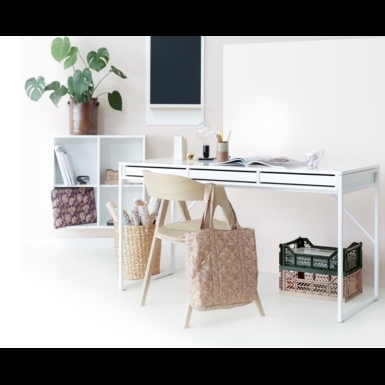 Hvis det er et nyt skrivebord, du er ude efter, kan vi blandt andet anbefale vores Mistral skrivebord. Skrivebordet har et minimalistisk, tidløst design, du aldrig vil blive træt af at arbejde ved. Bordet er yderst funktionelt og har indbygget tre lækre skuffer, som kan holde orden på skrivebordet, så redskaber og papirer ikke ligger og flyder. Skrivebord har også en indbygget ledningsskjuler, så du er fri for at have ledninger til at flyde og skabe rod på dit skrivebord. Bordet er designet, så du sidder behageligt ved bordet, og der er stor afstand mellem bordets ben, så din kontorstol ikke kører på benene.
