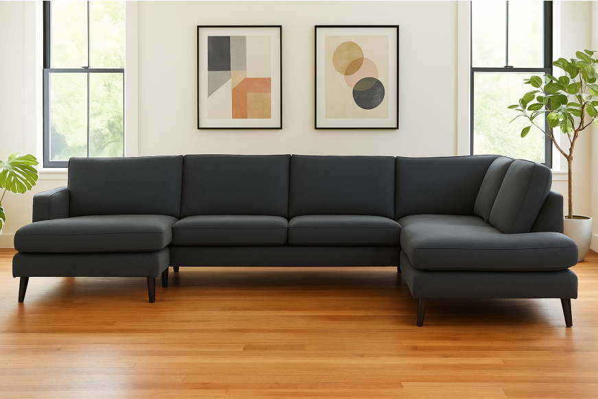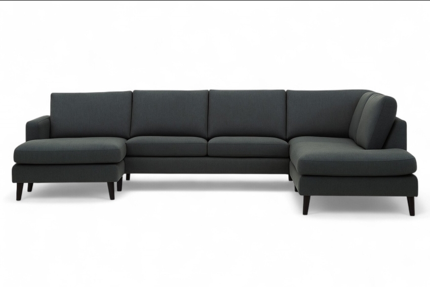 Info: Klassisk U-sofa m. chaiselong og open end.Mål: 332 x 219 Cm