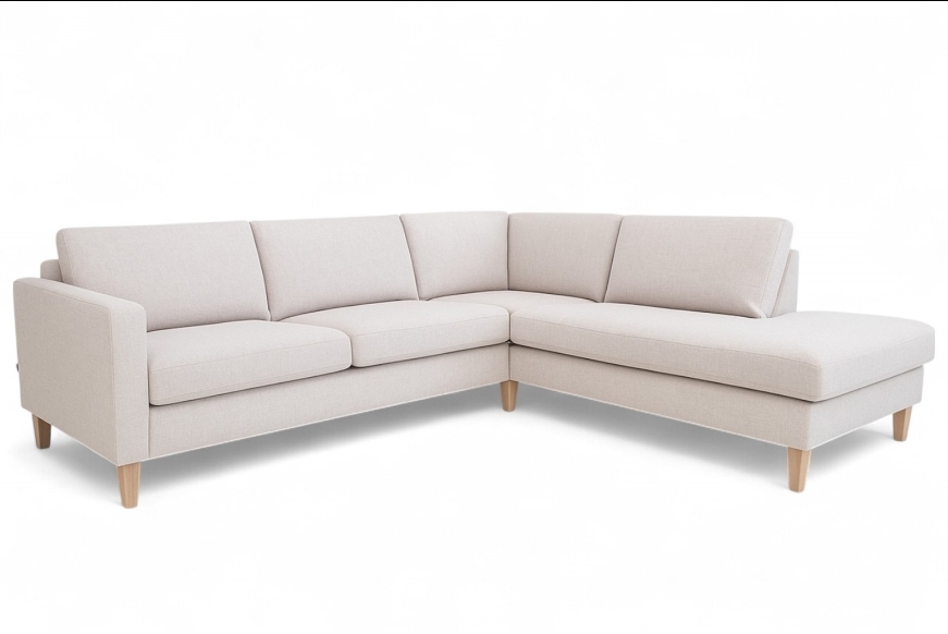Elegant sofa med openend. Fås i mange typer stof og læder, samt i flere størrelser.