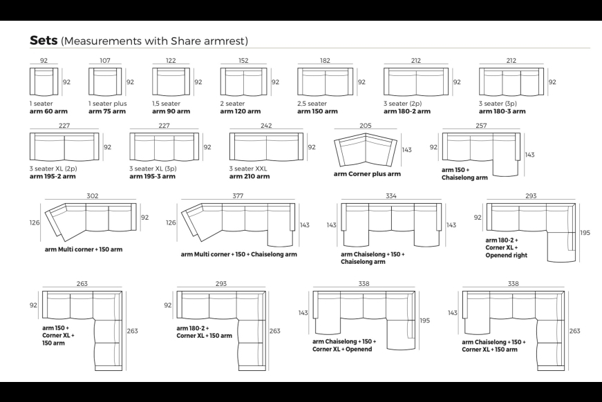 Med flere forskellige sædebredder, og et hav af moduler, samt stof- og læderbetræk og et utal af ben, er mulighederne endeløse.