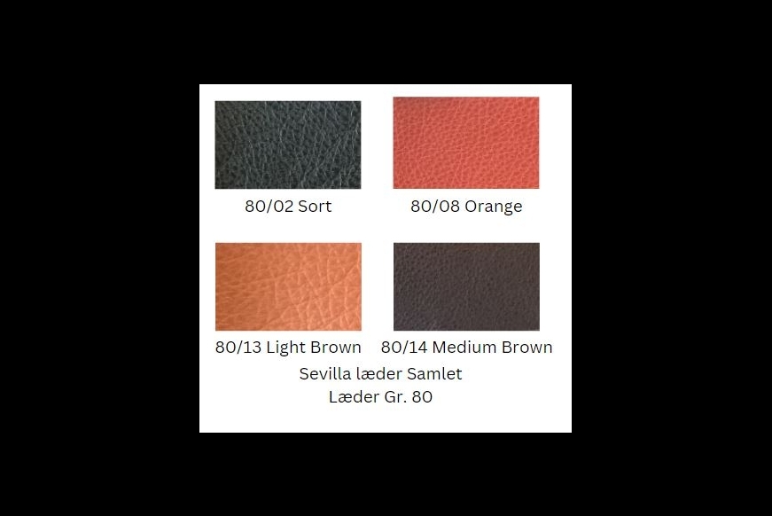 Betræk: Kampagne Læder 65 læder. farve: 02 Black - 13 Cognac - 14 Medium Brown