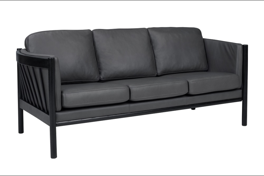 Danske Klassikere. 3 pers. monteret med kampagne læder. Med sort ege stel stel.