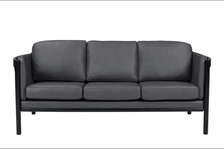 På billedet ses en 3 pers. Julie sofa, lækker læder overalt, og med sort egestel.