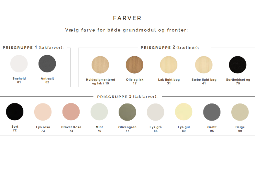 * Skriv venligst, hvilken farve du ønsker  korpus og skuffe i under bemærkninger, når du laver ordren.
