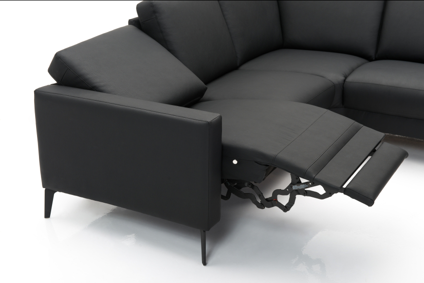 Openend sofa m. høj ryg, og el reclinersæde. Fås også i stof.