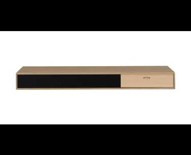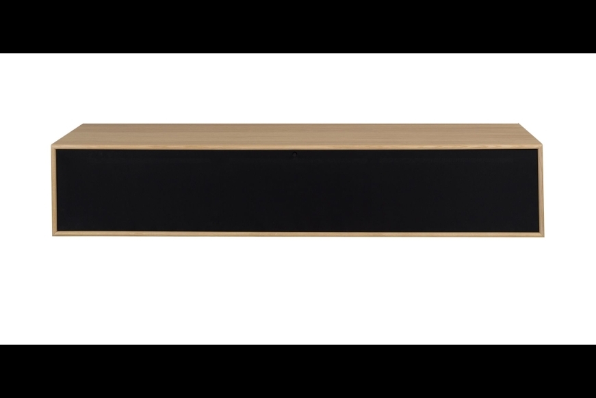 Mediemøbel med 1 stofklap i enten cura stof eller sort IR stof, skriv hvilken i kommentarfeltet. Kabinettet har elegante geringssamlinger på hjørner og afrundet forkant. Inkl. vægophæng - understel i træ eller metal kan bestille separat - spørg gerne og vi finder den løsning, som passer bedst hjemme hos dig.