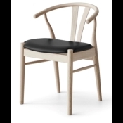 Frida stolen, tegnet Findahl. Fås i flere træsorter og betræk på sædet.