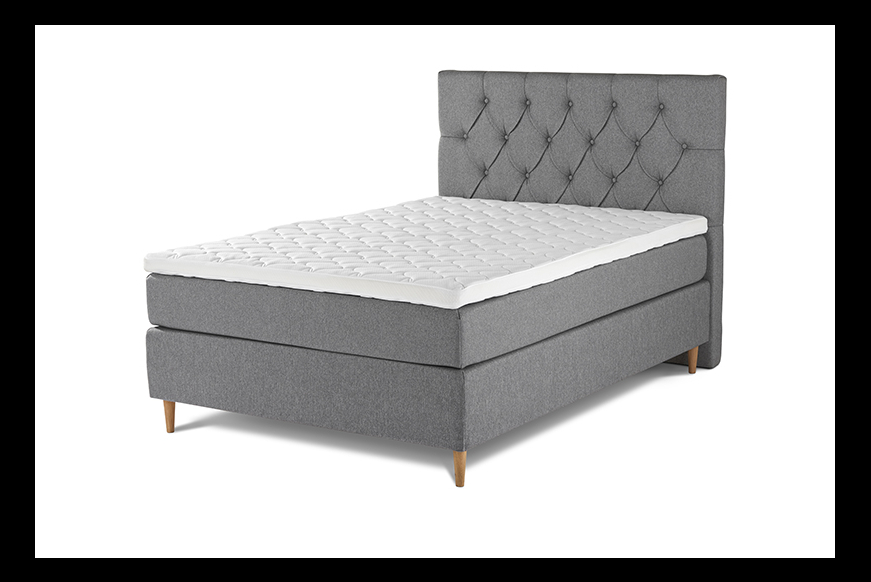 Kontinentalsengen har en base af pocket fjedre og en kerne af High Pocket fjedre inddelt i 7 komfortzoner polstret med purskum.